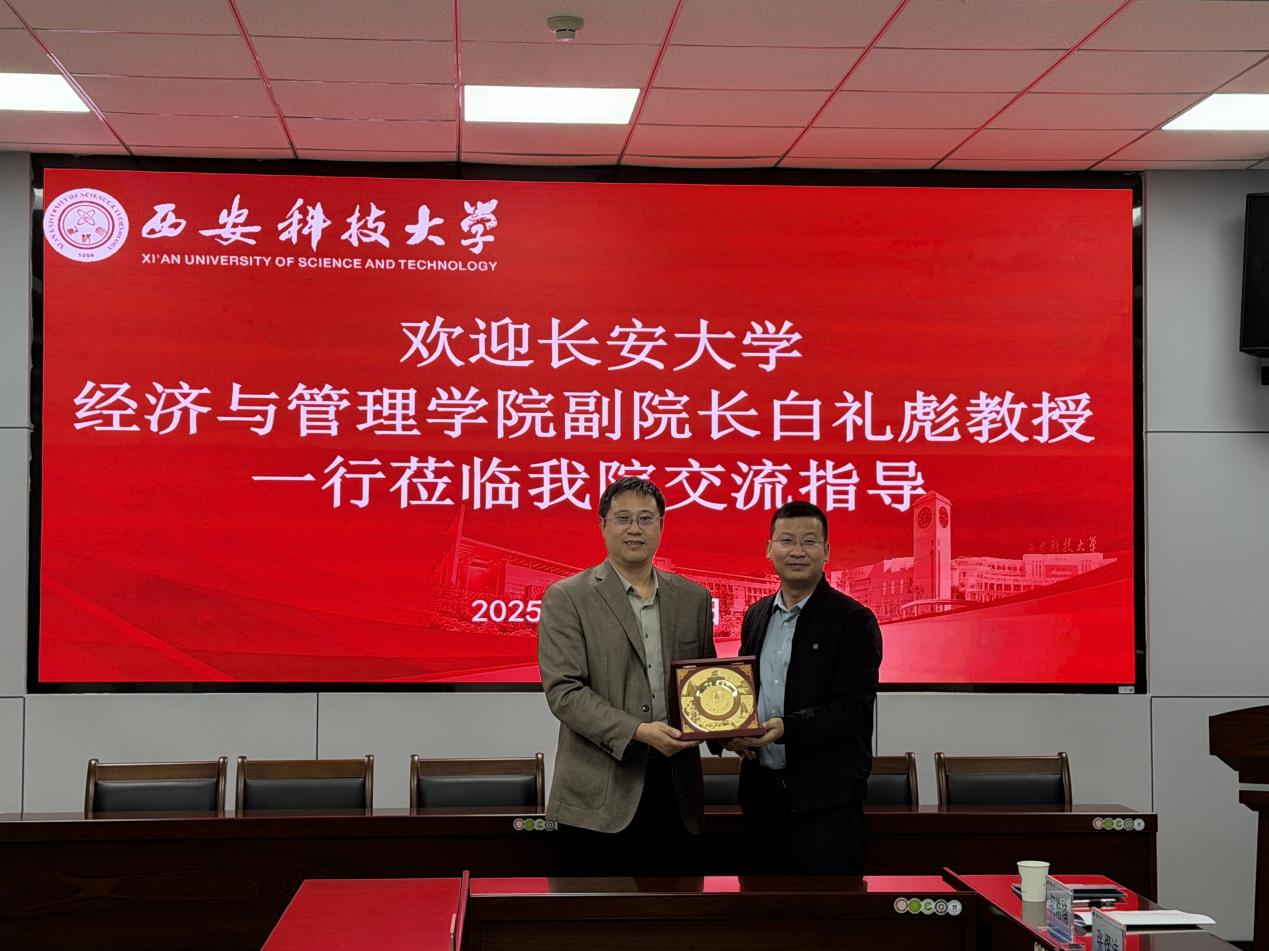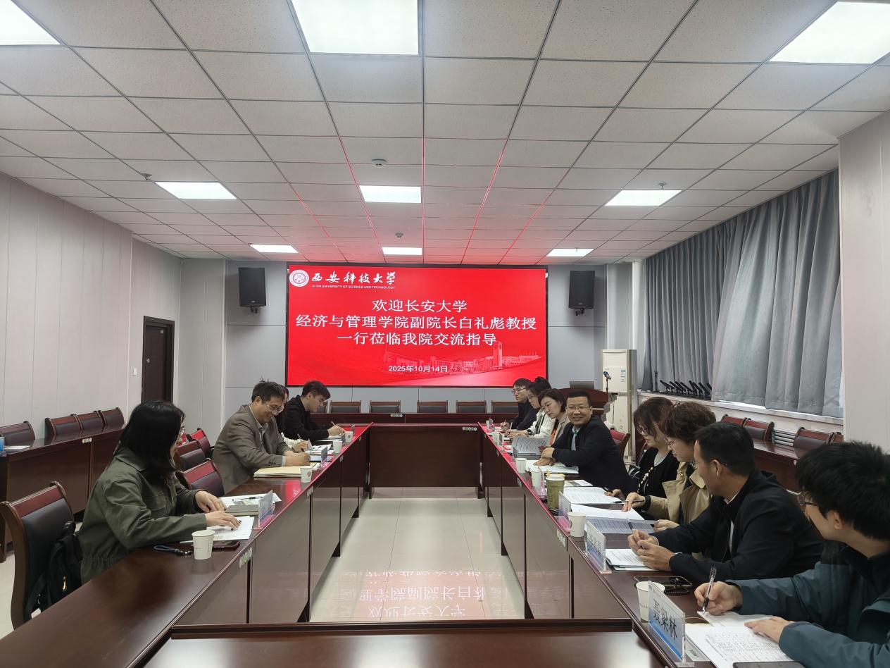 10月14日上午,长安大学经济与管理学院副院长白礼彪教授一行八人莅临我院访问交流,双方围绕学术研究、基金申报与团队建设等议题开展了深入座谈。座谈会由我院院长邹绍辉教授主持,王萍教授、罗博文副教授、沈剑老师共同参会。