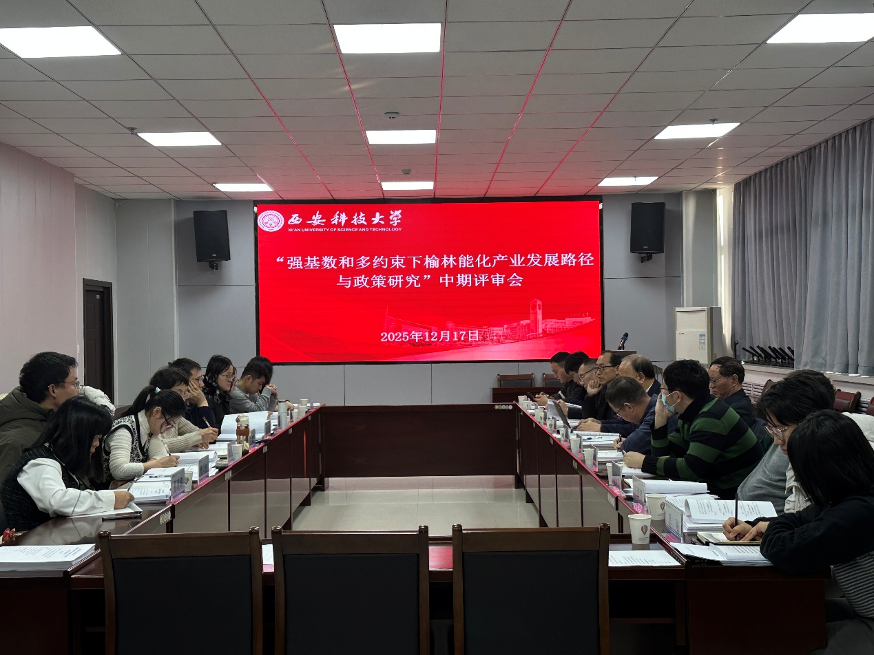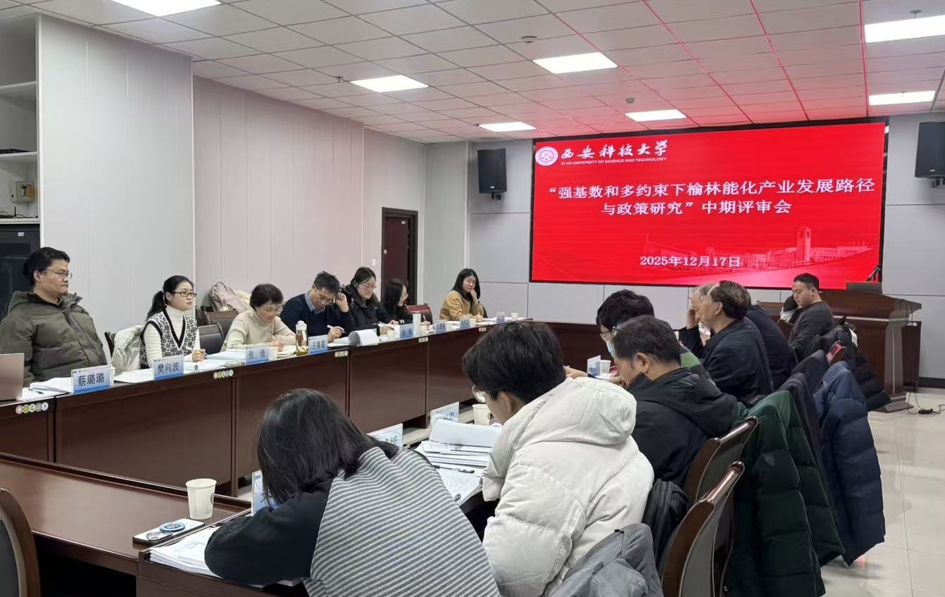 12月17日上午9点,管理学院承担的陕西能源经济研究院重大课题“强基数和多约束下榆林能化产业发展路径与政策研究”中期评审会在西安科技大学雁塔校区召开。会议特邀专家陕西省决策咨询委员会办公室主任郭卫东、陕西省决策咨询委员会科研处处长王海燕、陕西省决策咨询委员会委员张贵孝、能源局产业处副处长庄怀斌、西安理工大学副教授张铭凯,陕西省能源经济研究院执行院长潘松、科研副院长张相平及王征、吴彤、侯道林、王博援、冯珊珊、钱思进等参加会议;西安科技大学管理学院邹绍辉教授、王喜莲教授、杨晴副教授等与课题组成员共同参会,围绕“强约束条件下榆林能化产业高质量发展路径与政策建议”进行集中研讨。会议由管理学院院长邹绍辉主持。