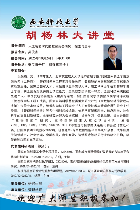 学术讲座预告:人工智能时代的数智商务研究:探索与思考