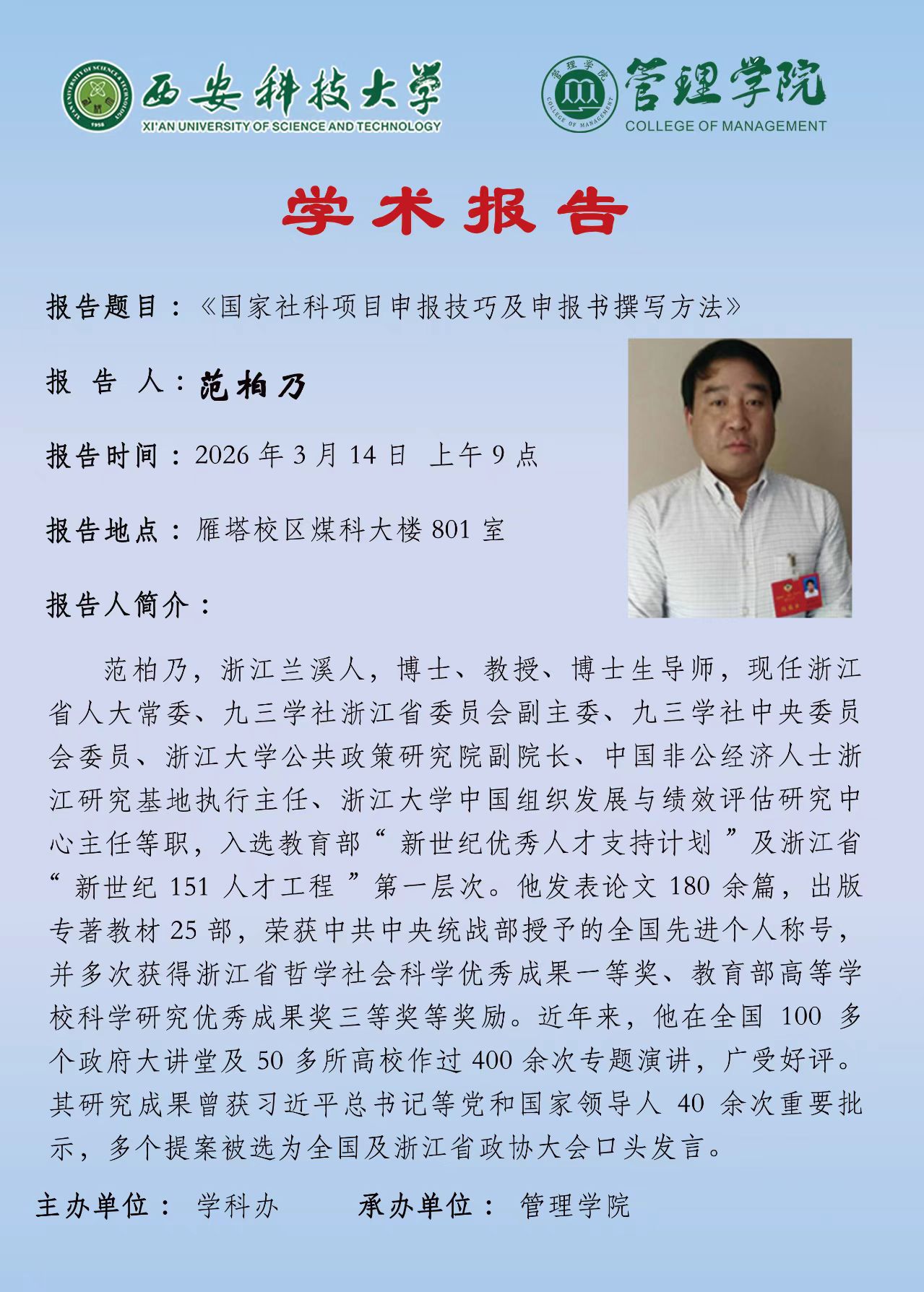 学术讲座预告:国家社科项目申报技巧及申报书撰写方法