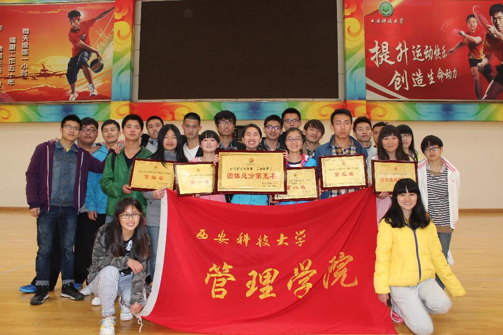 在历时两天半的比赛中,全体运动员发扬“更高、更快、更强”的体育精神,积极参赛,顽强拼搏,取得了一系列的好成绩。在开始比赛的第一天。我院王鸽老师获教工组100米冠军,彭兴翠同学获女子组铅球冠军。晚上进行的开幕式中,管理学院凭借着出色的表现,获得了啦啦操第三和街舞第四的成绩。为接下来的运动竞技奏响了有力的开场音。比赛进入第二天,管理学院运动员再接再厉。其中,杨俊婷同学获得1500米和3000米双项冠军,匡文佳同学获得400米冠军,陈西成同学获得男子组铅球第三,女子4×100米接力则获得第二名的成绩。比赛的最后一天,管理学院越战越勇。刘妍同学获得女子3000米竞走第一,牛小鹏同学获得男子1500米第一,我院获得女子团体第一、男子团体第八、总体第五的好成绩。