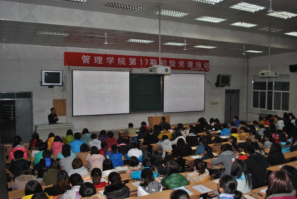 3月6日晚,我院第十七期初级党校在3号教学楼教208教室顺利开课,2010级和2011级约270位同学参加此次培训。学院分党委书记王学礼以“中国共产党的光辉历程”为主题进行了第一讲,主要讲述了中国共产党九十年来的发展历程和取得的成就。课后,同学们对王老师的讲课内容印象深刻,表示将牢记党的光荣传统,用自己的实际行动积极向党组织靠拢,争取早日成为一名合格的中国共产党党员。